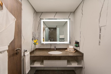 Во всех номерах: бесплатный Wi-Fi, кондиционер, ТВ, сейф, чайник, ванная комната с ванной или душем, косметические принадлежности, халаты, фен.